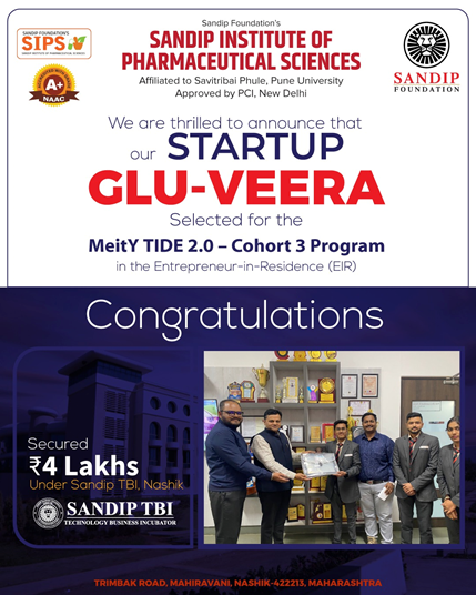 We are thrilled to announce that our startup, Glu-VEERA, has been selected for the MeitY TIDE 2.0 – Cohort 3 Program in the Entrepreneur-in-Residence (EIR) category and has secured ₹4 Lakhs in Government of India funding under Sandip TBI, Nashik!
